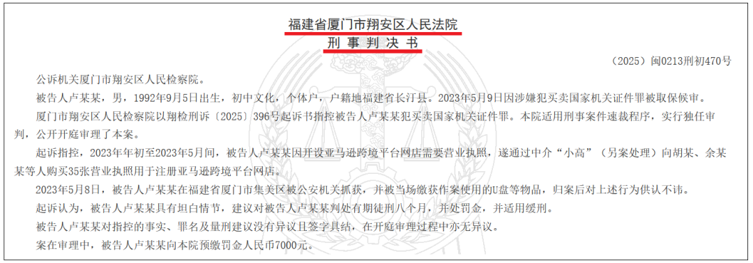 两起亚马逊卖家判刑案例释放明确信号:买卖营业执照、身份证开店或倒卖账号资料,已不只是平台违规,而是刑事犯罪。随着KYC与监管收紧,多账号铺货的灰色路径被法律封堵。未来想做多店,只能走真实主体、合规用人的正路,靠买资料堆号的时代结束了。