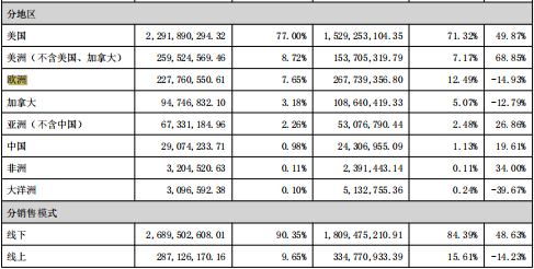上市大卖财报中的欧美销售数据