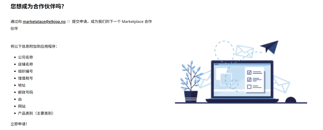 ![]() 图源:Elkjøp官网 6.入驻条件 一次申请可实现集团旗下挪威、瑞典、丹麦和芬兰的多国平台销售渠道
