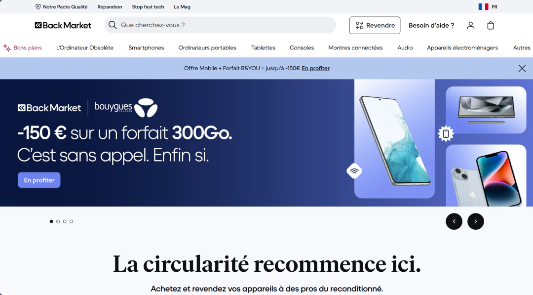 ![]() 1.平台介绍 Back Market由Thibaud Hug de Larauze、Quentin Le Brouster和Vianney Vaute于2014年联合创立,是一家专注于优质翻新电子产品的全球电商平台,总部位于法国巴黎。 创办Back Market的原因,旨在通过建立了一个全球平台,将消费者与专业的技术翻新商连接起来,打破过度消费的循环,让人们能够更好地利用已有的资源。 平台为超过一千万人(并且数字还在增长)提供了一种更值得信赖、更实惠、更环保的购买技术产品的方式。 ![]() 图源:Back Market官媒 2.覆盖市场 业务遍及欧美亚三大洲18个国家和地区,包括法国、德国、意大利、西班牙、奥地利、美国、英国和日本等国家。 其中欧洲发达国家是目前翻新电子产品的热销市场。 ![]() 图源:Back Market官媒 3.商品类目 专注于翻新电子设备的销售。 核心类目包括智能手机、平板电脑、笔记本电脑、耳机、智能手表、游戏机等。 无论翻新的是什么设备,每个卖家都必须进行25项检查,以确保每台设备符合平台的质量标准。 ![]() 图源:Back Market官媒 4.市场表现 平台营收(2025 年第二季度)