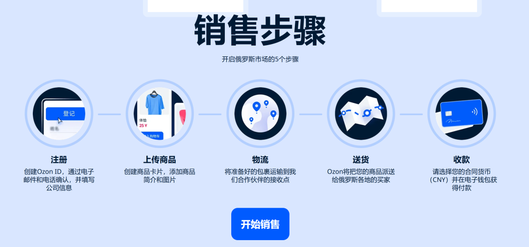 ![]() 9.入驻流程 1)通过Ozon官网提交入驻申请; 2)平台审核通常需要3-5个工作日,审核通过后,即可开通卖家后台; 3)使用中文后台和翻译工具,将商品信息翻译成俄语后上架; 4)根据自身情况选择物流方式即可开始销售。 ![]() 图源:Ozon官网 |