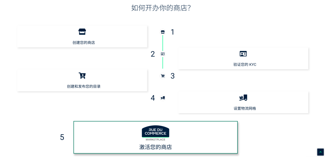 9.入驻流程 1)通过官网或代理提交入驻资料; 2)KYC认证; 3)审核通过后,上传商品信息; 4)设置物流方案并开始销售。 ![]() 图源:Rue du Commerce官网 |