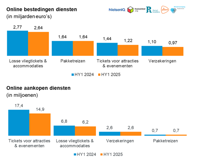 根据Thuiswinkel Markt Monitor最新发布的2025年上半年报告数据显示,荷兰消费者的线上购物习惯正在发生显著变化。 数据指出,2025年上半年,荷兰在线总支出超过170亿欧元,但与去年同期相比微降1%。 这是否意味着电商热潮正在退去? 深入数据背后,这并非市场萎缩,而是一场消费重心转移的信号。 本文将深入解读这些数据,为跨境卖家朋友们剖析数据背后的荷兰消费结构转变趋势,抓住新一轮的增长机遇。 焦点一:服务消费退潮,“体验经济”降温后的缺口 01 数据表现