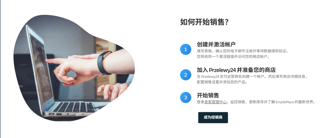 ![]() 图源:Empik官网 9.入驻流程 1)通过官网或者代理创建并激活帐户; 2)提交营业执照、税务登记证、产品清单等资料,等待平台审核; 3)产品上架,并设置价格、库存、物流等信息; 4)审核通过后正式上线销售。 ![]() 图源:Empik官网 |