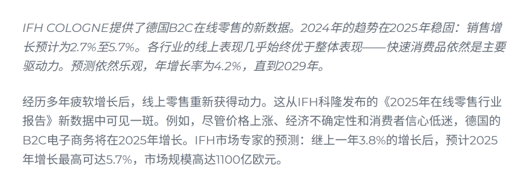 2025年底,德国权威研究机构IFH KÖLN科隆发布的《2025年德国在线零售行业报告》,带来重磅利好:德国在线零售已结束短暂调整期,重回增长轨道,且这一势头将持续至2030年。 这对于瞄准欧洲市场的跨境卖家而言,这无疑是布局德国的最佳窗口期。 ![]() 图源:ifhkoeln 报告核心数据: 增长确定性拉满,品类机遇清晰 研究数据为德国在线零售的增长提供了坚实支撑,无论是短期增速还是长期潜力,都呈现出明确的向上趋势: 短期增长稳中有进: 2025年德国在线零售消费预计增长2.7%-5.7%,规模最高可达1100亿欧元;而2024年这一数据已实现3.8%的同比增长,为后续扩张奠定基础。 品类增长亮点突出 各行业品类几乎持续不断地在线发展,部分赛道展现出爆发力。2025年快消品在线零售涨幅高达14.6%,成为增速最快的品类;健康与保健品类紧随其后,增速预计达8.8%;生活与家具行业则线上增长温和,高达2.9%。这反映出德国消费者对 “健康生活”“便捷购物” 的需求升级。 长期潜力持续释放 通过三种场景分析,IFH KÖLN预测2025-2029年在线零售将保持稳定增长。其中,中间场景下年均增速达4.2%,2029年市场规模将突破1280亿欧元;最强增长场景下,这一数值更是有望攀升至1410亿欧元,5年间增长超30%。 ![]() 图源:ifhkoeln 值得注意的是,这一增长趋势并非单一机构预测。德国电子商务行业协会Bevh的数据显示,2025年上半年德国在线商品零售额已同比增长 3.5%,总额达398.4亿欧元,其中二季度增速提升至3.8%;同时,旅行预订、票务等数字服务增长4.4%,印证了德国消费者“线上化”习惯的深化。 德国市场现状: 巨头守门但新机遇涌现 想要入局德国市场,必须先读懂其独特的生态格局 —— 既有稳固的“老牌玩家”,也有崛起的“新势力”,同时消费者需求的转变也为跨境卖家提供了切入点: 本土巨头占据主导 德国前30大电商平台中,超70%为本土企业,以OTTO、Zalando、Kaufland为代表的平台,凭借数十年积累的品牌信任,拥有极高的用户活跃度和复购率。 国际平台与本土优势互补 亚马逊德国站(Amazon.de)仍是市场龙头,凭借庞大用户基数和完善的运营体系,在标准化产品、品牌商品领域优势显著。 消费者偏好转向 “务实性价比” 受通胀影响,德国消费者不再盲目追求品牌溢价,而是更看重“质量可靠+价格公道”。据《德国电商新闻》调研,超60%消费者网购时会主动比价,35%倾向选择低价产品;同时,42%的消费者优先选择节能产品,超半数关注可回收包装,“绿色消费” 理念深入人心,这为高性价比、可持续属性的跨境商品打开了市场。 中国平台加速渗透,竞争格局生变 Temu、SHEIN、AliExpress等中国平台凭借低价策略和供应链优势,在德国市场份额持续提升 ——2025年二季度,这些平台的订单量占比已从 2024年同期的5.5%升至6.4%,其中Temu首年GMV达7.5亿美元,SHEIN在服装品类增速超40%,为跨境卖家提供了借船出海的新选项。 德国本土平台推荐清单 不同平台的定位、优势、入驻门槛差异显著,卖家需根据自身品类、资源匹配最适合的平台: Amazon.de ![]() 核心优势 欧洲最大电商平台,活跃用户超4000万;FBA物流覆盖全欧,配送时效快;流量扶持体系成熟。 适合卖家 新手卖家、品牌卖家 推荐品类: 全品类(尤其 3C、家居、美妆) 入驻要求: 需完成德国税务注册;品牌卖家建议申请Brand Registry;合规要求严格(如产品认证、包装标注) OTTO.de ![]() 核心优势 德国本土第二大平台,用户信任度高,客单价高;主打“严进宽营”,竞争环境健康;支持半托管模式降低入驻门槛 适合卖家 有品牌基础、主打中高端的卖家 推荐品类 家居、电子产品、时尚服饰 入驻要求 优先接纳德国本土注册企业;无本土主体可通过半托管团队或合规代理评估入驻;需符合平台品牌定位与品质标准 了解更多OTTO.de Kaufland.de ![]() 核心优势 增长最快的本土平台之一,覆盖7国欧洲市场,在线消费者规模超亿;“线上+线下”融合,门店自提优势显著;入驻政策优惠 适合卖家 寻求市场增量的中小卖家 适合品类 全品类(尤其食品、日用品、母婴) 入驻要求 支持全球卖家入驻,无强制本土主体要求;需对接平台物流体系(如支持门店自提);对价格竞争力要求较高 了解更多Kaufland Zalando ![]() 核心优势 欧洲领先的时尚电商平台,专注鞋服、配饰;用户年轻化,复购率高;品牌形象要求高 适合卖家 专注垂直领域的品牌卖家 推荐品类 时尚服饰、鞋包、美妆 入驻要求 需具备清晰的品牌定位与设计风格;优先选择德国本土注册企业;产品需符合欧洲环保标准(如OEKO-TEX认证) 了解更多Zalando Hood.de ![]() 核心优势: 小众多品类平台,竞争压力小;平台佣金低(5%-10%),运营流程简化;对新手友好 适合卖家 初期布局德国、缺乏运营经验的中小卖家 适合品类: 长尾品类、细分市场产品 入驻要求: 无强制本土主体要求;入驻审核宽松,流程简单;需自行解决物流(建议对接德国本地仓储) 了解更多Hood.de 此外,若想拓展德国周边市场,Allegro(以波兰为核心,德国买家占比超30%)也是优质选择,其对德国本土企业入驻支持力度大,可作为辐射中东欧的跳板。 提升成功率的 3 个关键 入局小贴士: